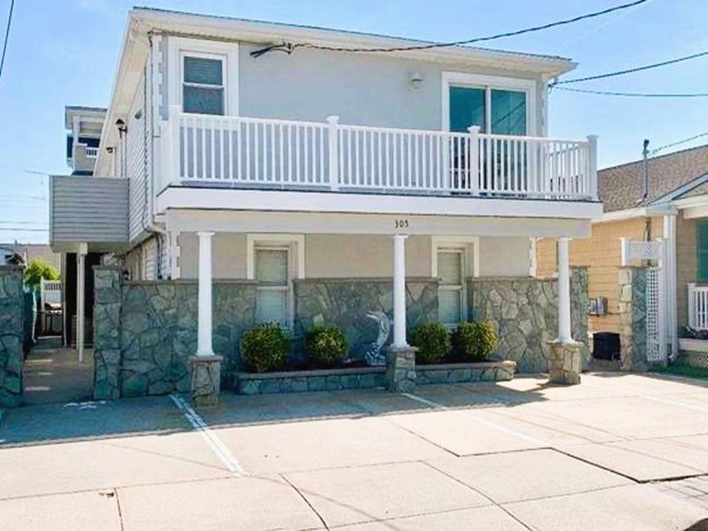 This 2nd floor/top floor (former owner’s quarters) offers a 4 bedroom, (2 king beds, 2 queen beds, 1 large 2 full baths with open concept spacious living room and large eat in kitchen. Smart TVs in every bedroom and the living room (5 all together). Entrances on both sides of the unit. Central Air & Heat Pump. Berber carpet in the bedrooms and cortex flooring in the rest of the unit. Laundry room off of the hallway with new stackable washer and dryer. Sunroom on the ocean side of the house to store your beach gear. This unit also offers a large front deck off of the living room with OCEAN views!!! There are 2 off street parking places and a third if you park on the street behind the 2 cars in the driveway.