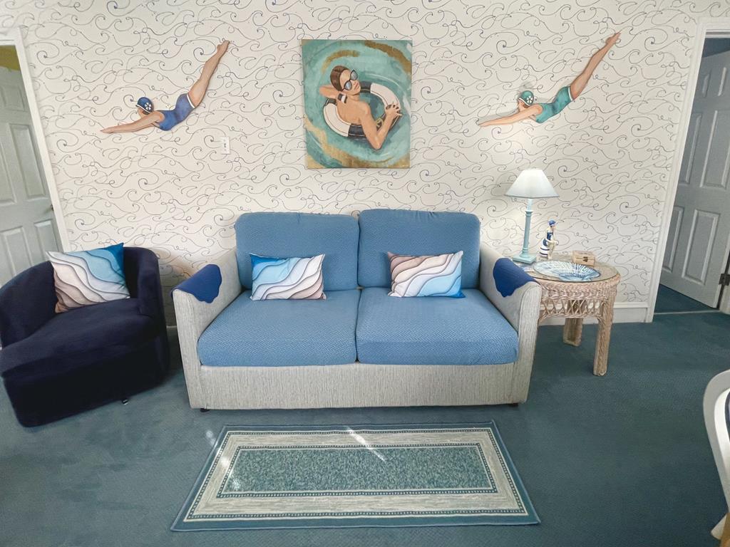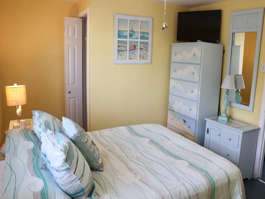 Inside, you’ll find two cozy queen beds and two twin beds, providing a restful night’s sleep for everyone. And for a bit of fun, count the dolphins scattered throughout the space if you can keep track!